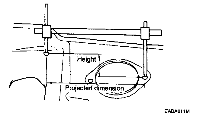 1. These are the dimensions measured when the measurement points are projected from the vehicle's surface, and are the reference dimensions used for body alterations.