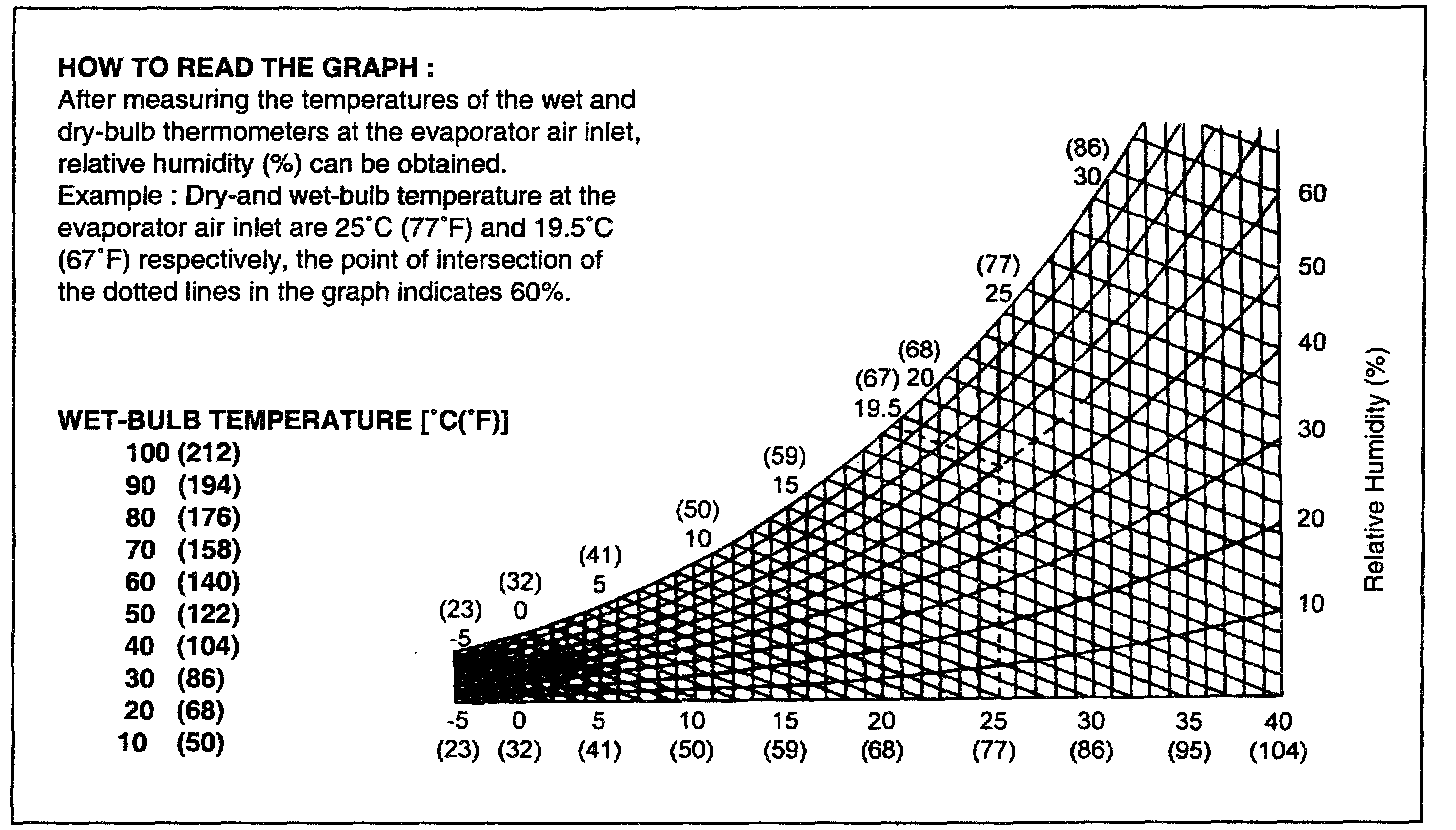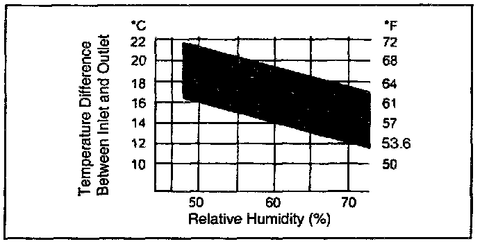 10. Check that the intersection of the relative humidity and temperature difference is within the block hard line. If the intersection is within the block hard line, cooling performance is satisfactory.