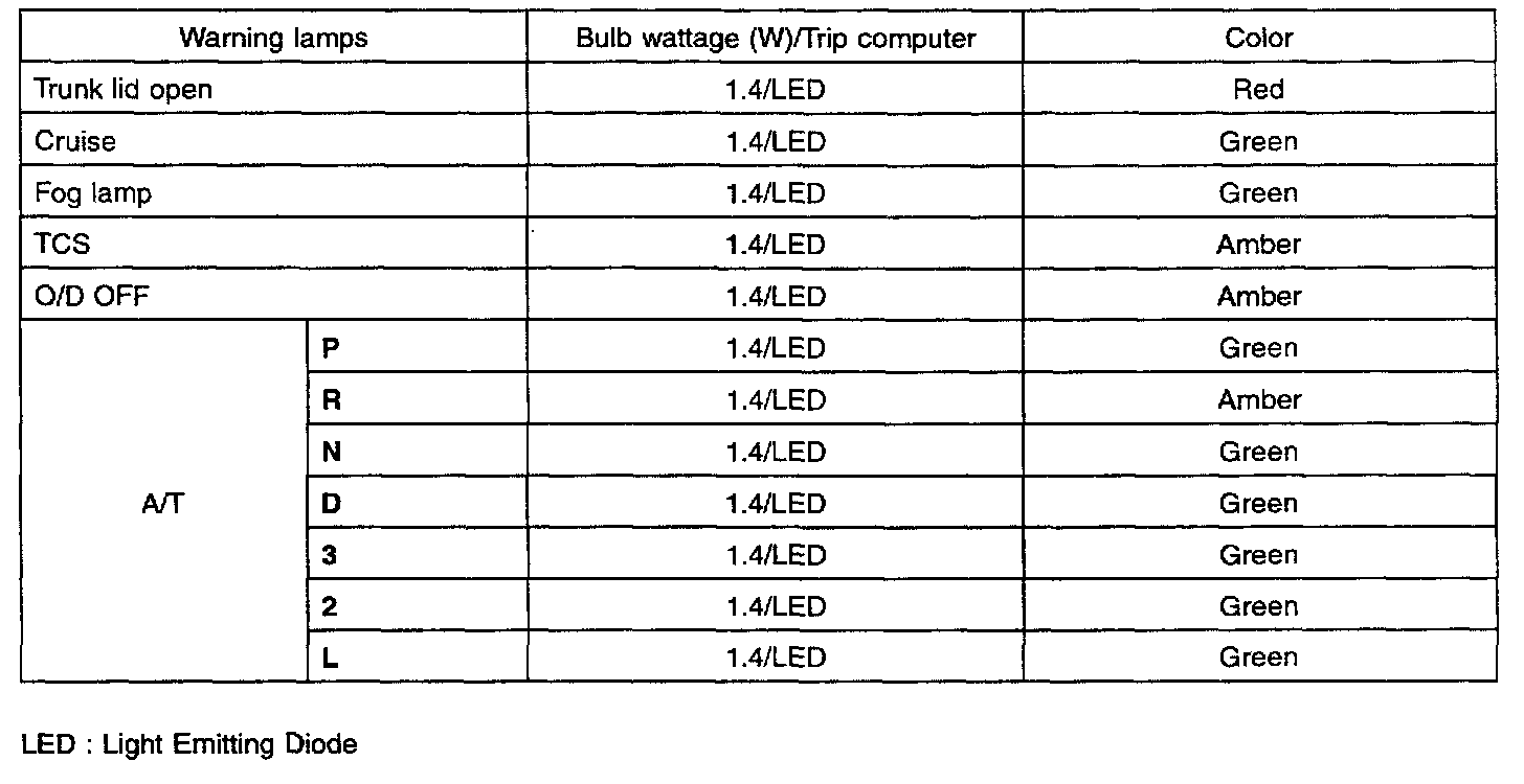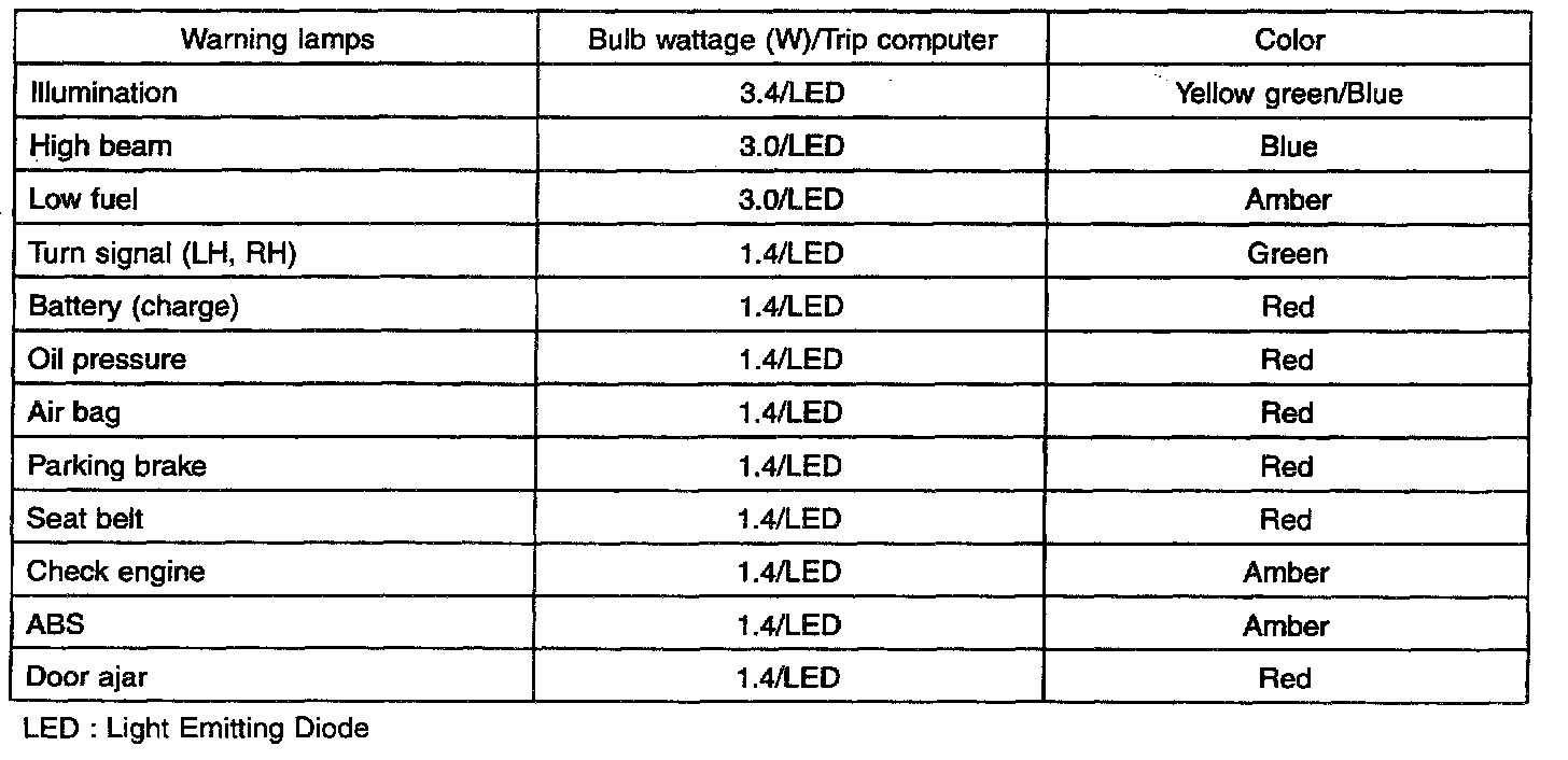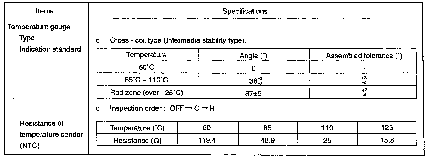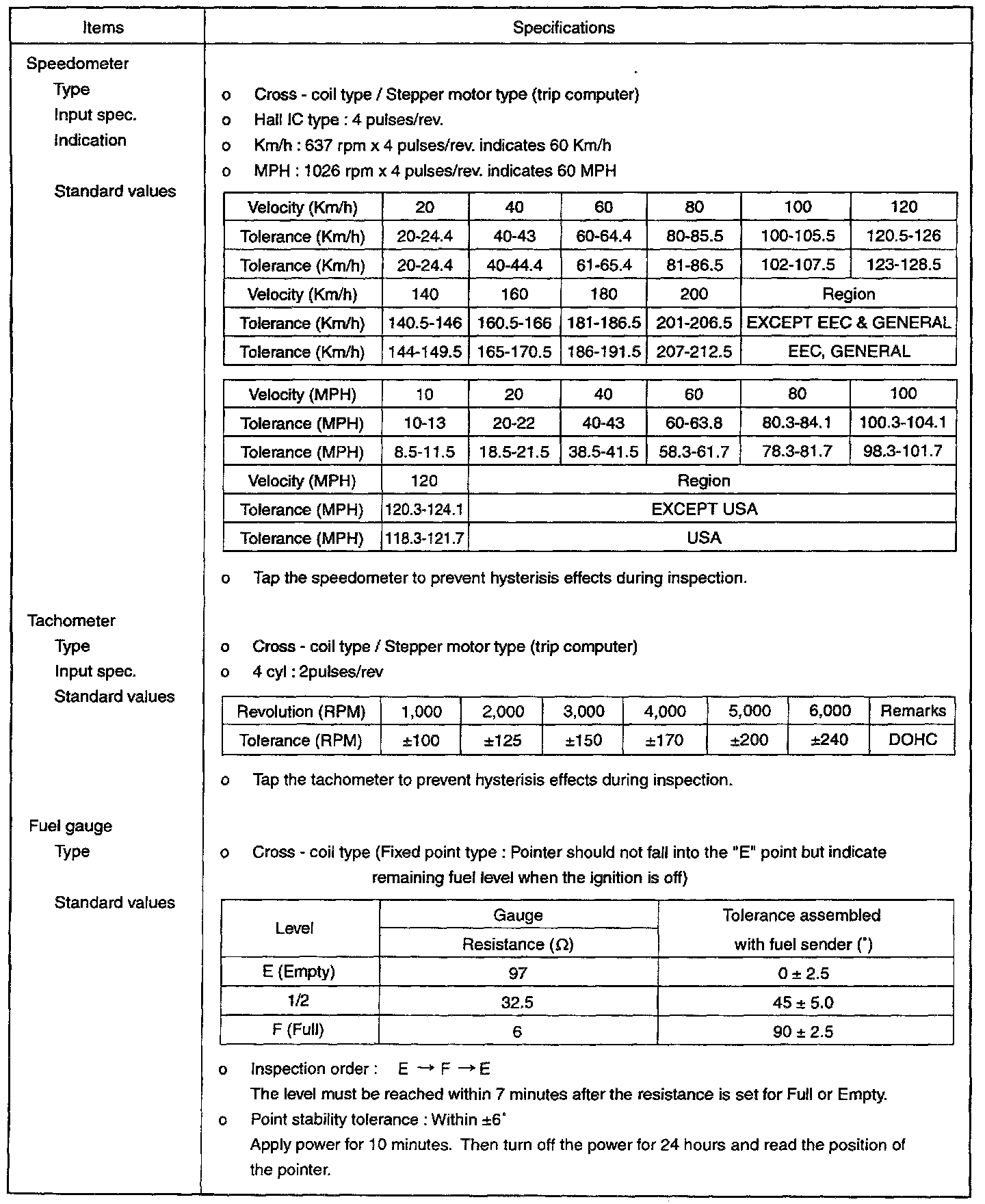Instrument Panel, Gauges and Warning Indicators: Specifications