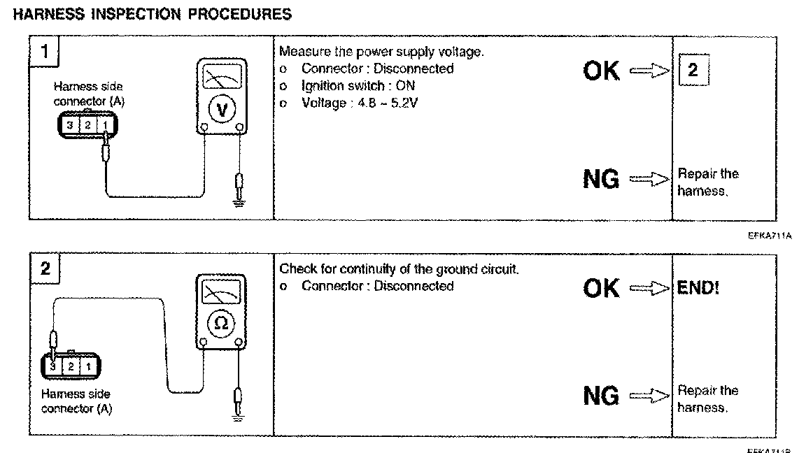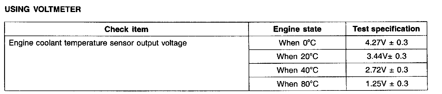 2. With the temperature sensing portion of the engine coolant temperature sensor immersed in hot water check resistance.