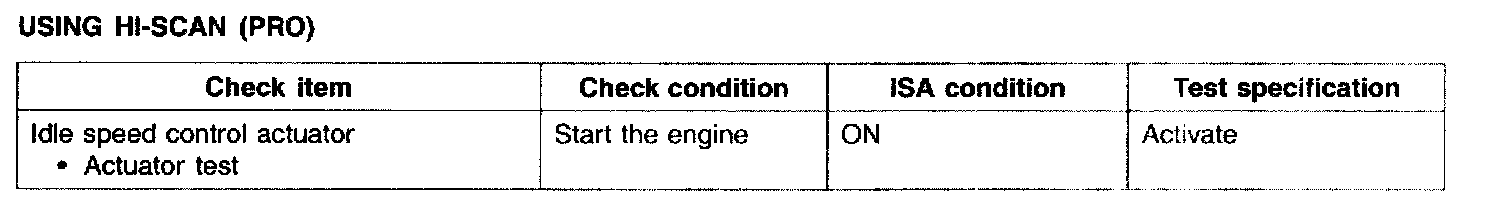 ****Some values in these diagnostic procedures are incorrect, refer to the following 2 tables for updated values or to TSB - 03-36-024 for updated values****IDLE SPEED CONTROL ACTUATOR (ISC ACTUATOR)