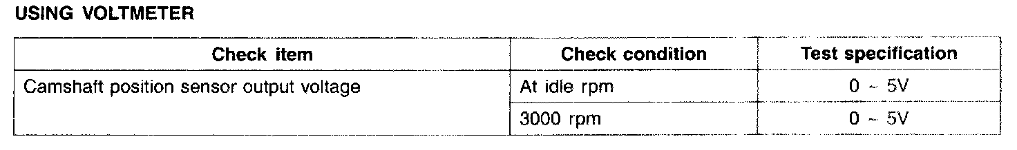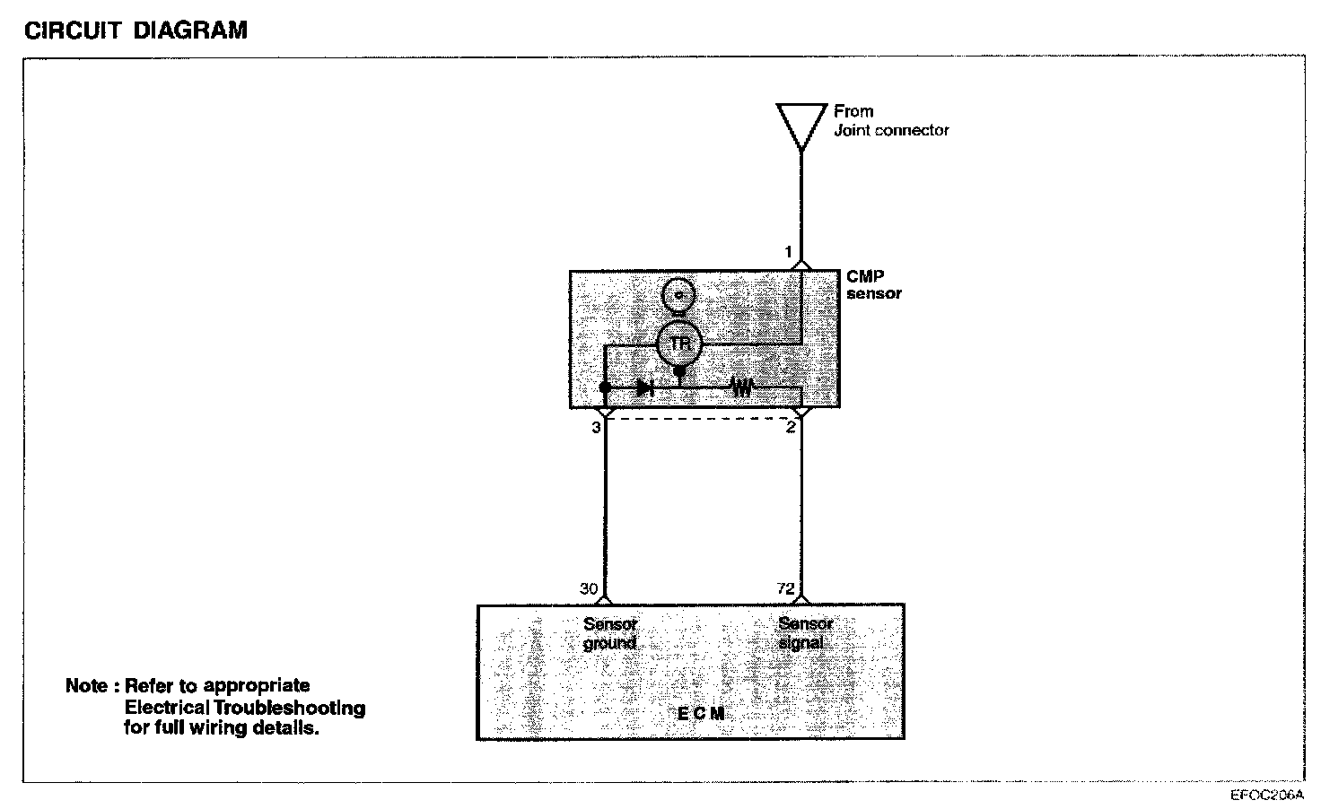 CAMSHAFT POSITION SENSOR (CMP SENSOR)The camshaft position sensor (CMP Sensor) senses the TDC point of No.1 cylinder on its compression stroke. Its signal is fed to the ECM to be used to determine the sequence of fuel injection.