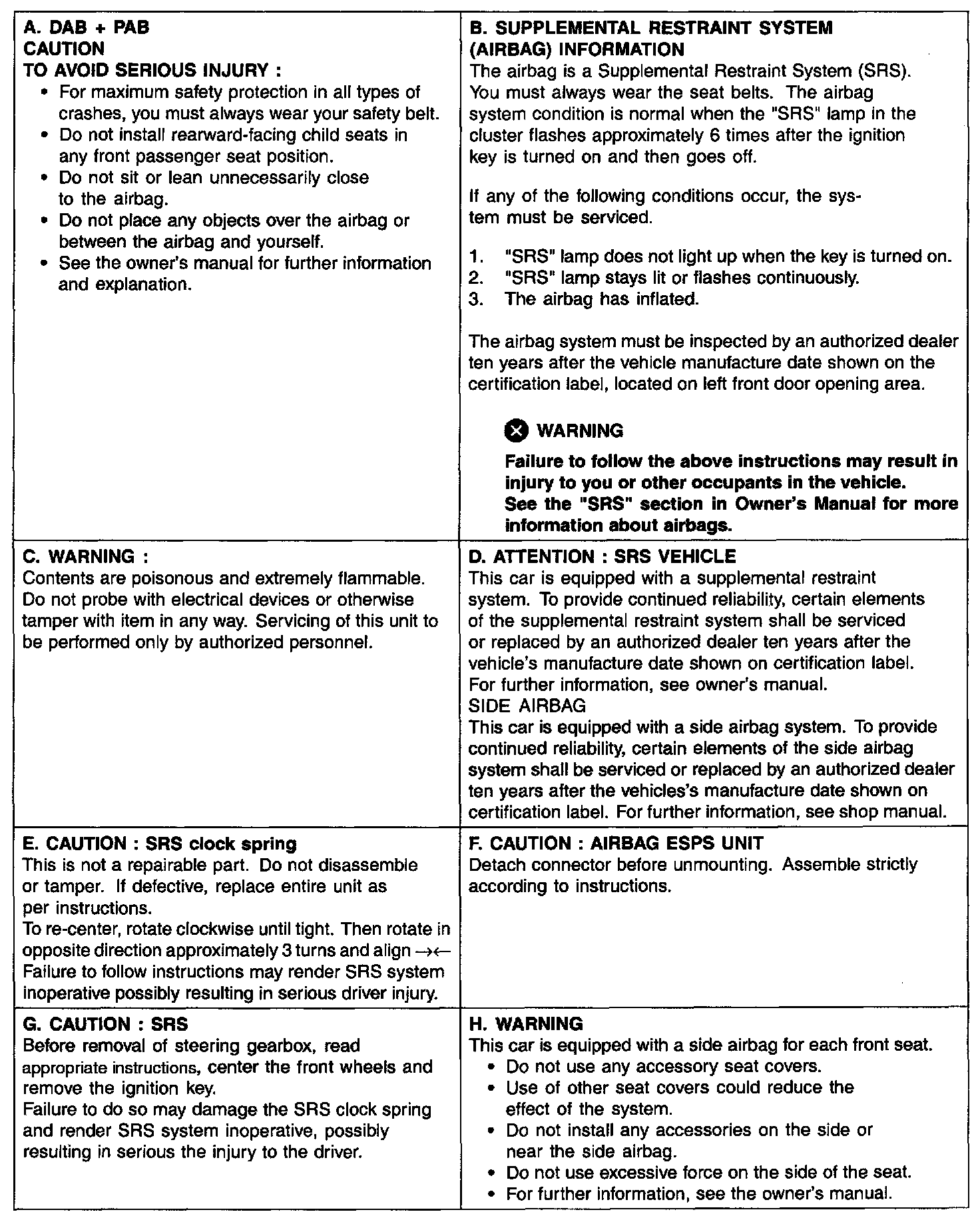 A number of caution labels relating to the SRS are found in the vehicle, as shown in the illustration. Follow label instructions when servicing the SRS.