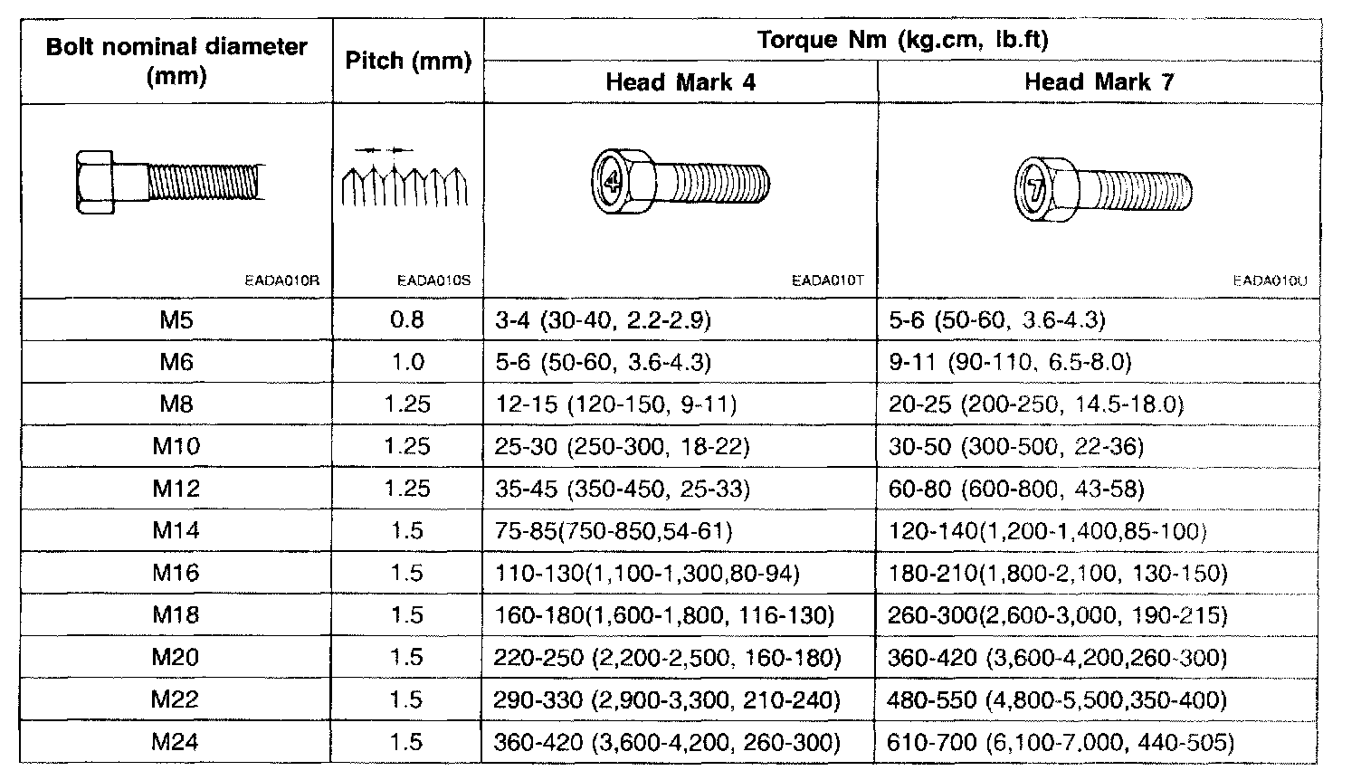 2. The torques shown in the table are not applicable: