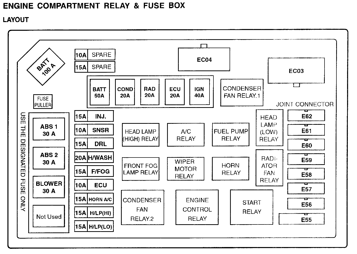 Engine Compartment Relay & Fuse Box Circuit Details: