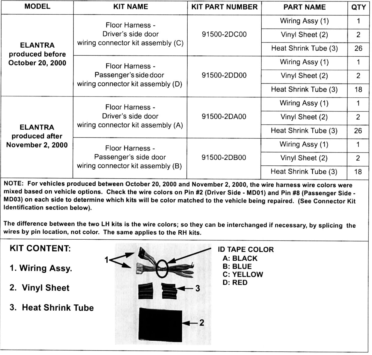 This bulletin supersedes TSB # 01-90-004 to update the door wiring harness part numbers and the effective vehicle production date range.