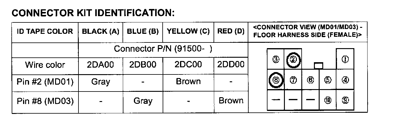 CONNECTOR KIT IDENTIFICATION: