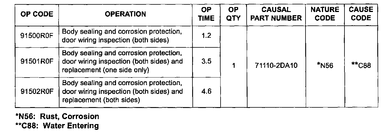 To correct this condition, reseal the seams and inspect the door wiring connectors for corrosion. If necessary, replace the door wiring connector and the door wiring by following the service procedures described in this TSB.