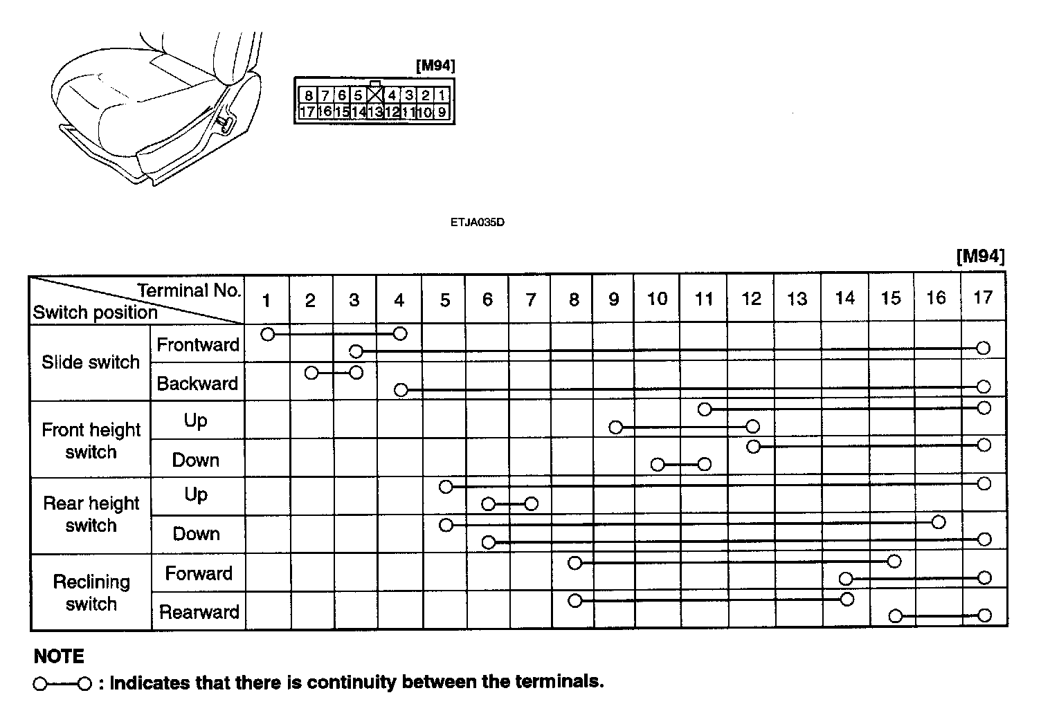 power seat switch and check for continuity between terminals. If continuity is not as specified, replace the switch.