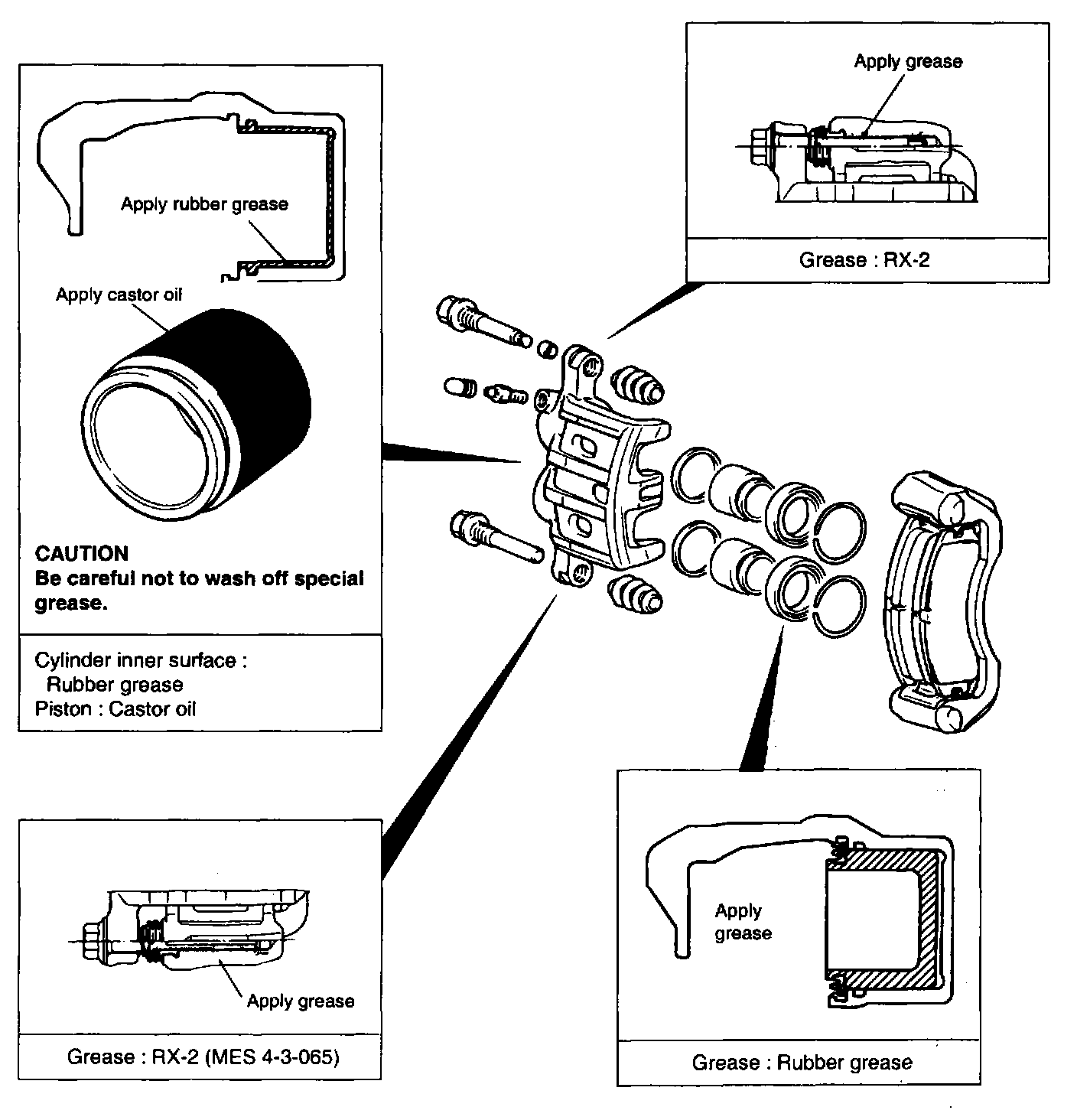 2. Clean the piston surface and cylinder using the alcohol or the specified brake fluid.