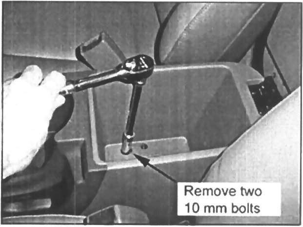 3. Remove the two 10 mm bolts securing the floor console.