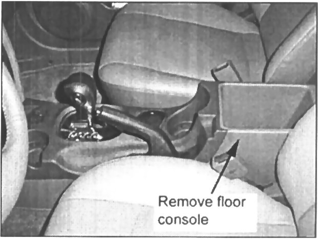 5. Remove the floor console. Disconnect the connectors to the seat warmer switch, if installed.