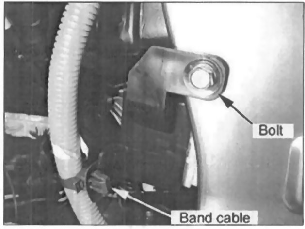 23. Install the mounting bracket bolt and reconnect the band cable to the mounting bracket.