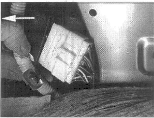 10. Pull the wiring harness and connectors forward as shown for ease of installation of the extension wire.