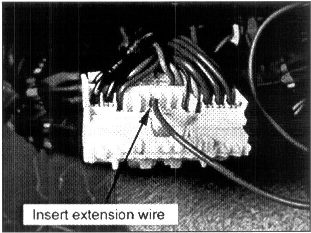 19. Insert the extension wire terminal into the # 8 receptacle (counting from the right side as shown in photo) in the connector until a click sound is heard.