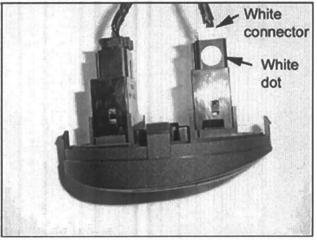 Be sure to connect the white connector to the receptacle with the white dot.