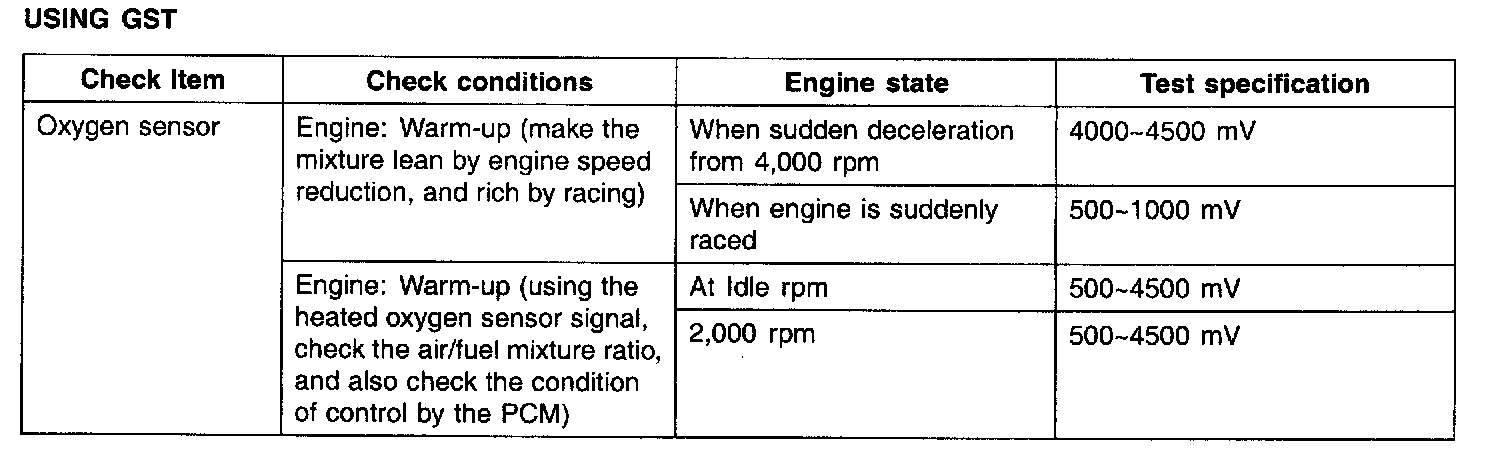 2. If the HO2S check results were normal, but the sensor output voltage is out of specification, check for the following items (related to air fuel ratio control system):