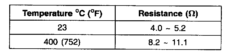 1. Disconnect the oxygen sensor connector, and measure the resistance between terminal 3 and terminal 4.