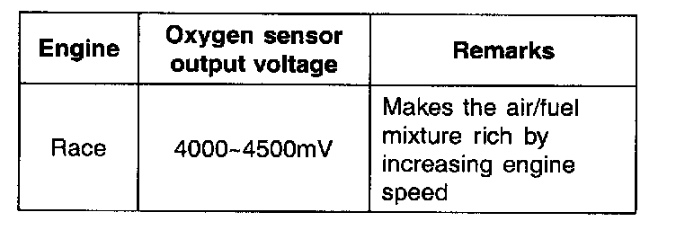 4. While repeatedly racing the engine, measure the oxygen sensor output voltage.