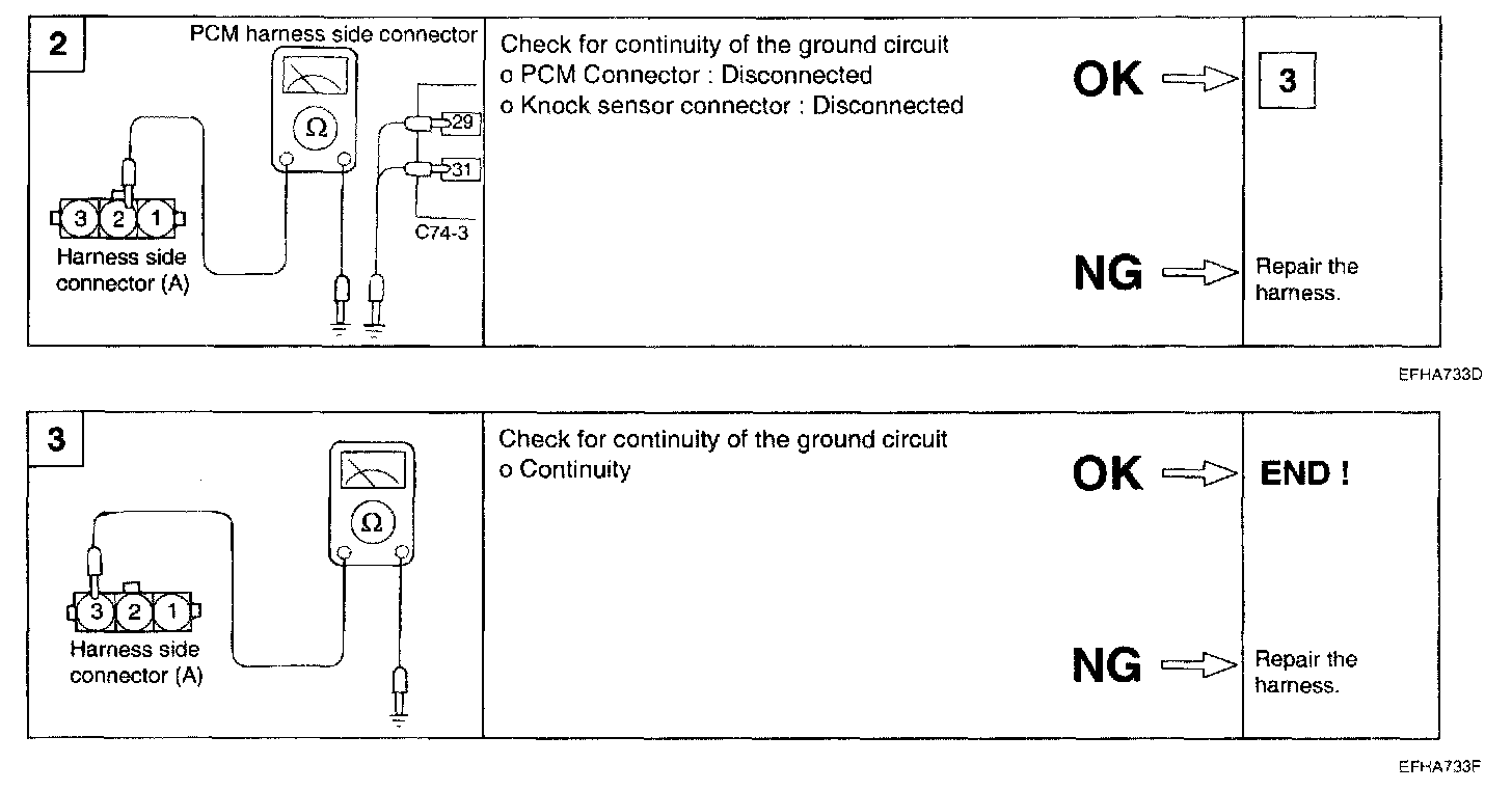 When the knock sensor signal is not detected, even though the engine is in an overload condition
