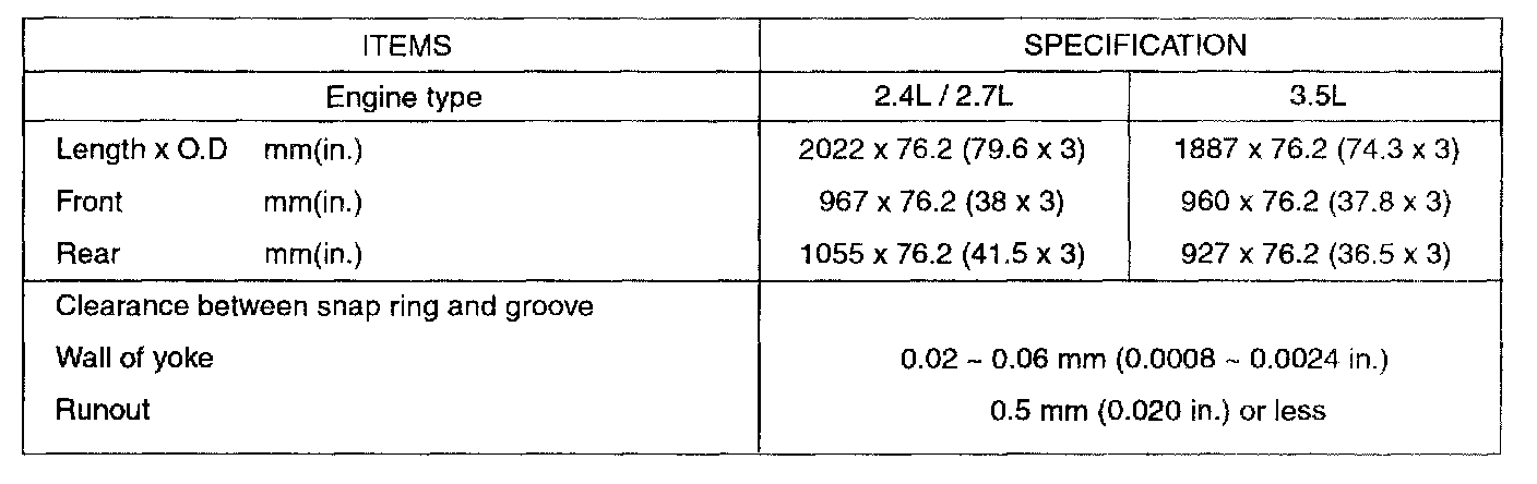 PROPELLER SHAFTNOTE: Propeller shaft length indicates the length between the center points of each joint.