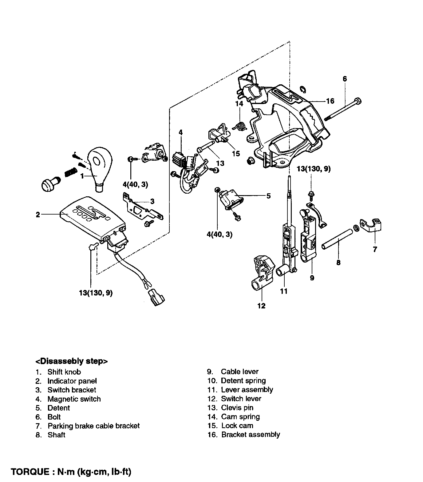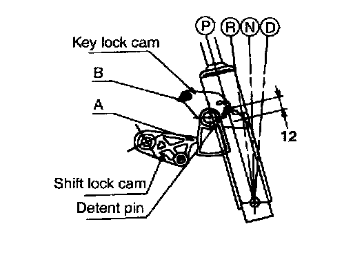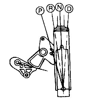 3. When the brake pedal is not depressed, the shift lever should shift smoothly to "P" position from all heading other positions.