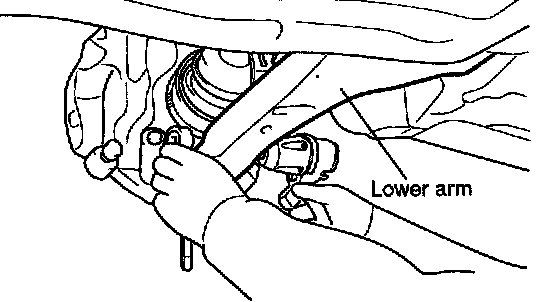 9. Remove the lower arm ball joint mounting bolt.