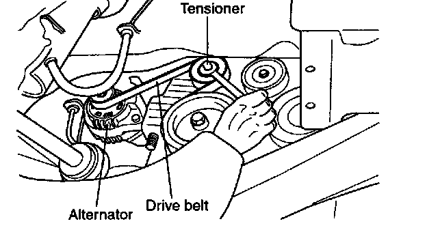 12. Remove the alternator drive belt using the tensioner.