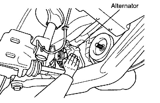 15. Remove the alternator mounting bolt and then remove the alternator as shown in the illustration.