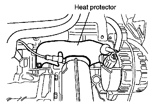 2. Remove the air intake hose and air cleaner cover and then disconnect the oxygen sensor and remove the oxygen sensor connector from the oxygen sensor mounting bracket. (engine room left side).