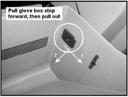 1. Open the glove box and remove the 2 rubber stop blocks from each side of the glove box.