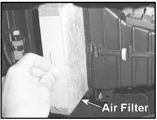 10. CAREFULLY remove the air filter by sliding it straight out. Rough handling of the filter during removal may spill debris into the evaporator case or onto the floor.