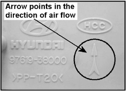 11. Install a new cabin air filter. Insure the arrow points in the direction of airflow (arrow points toward evaporator).