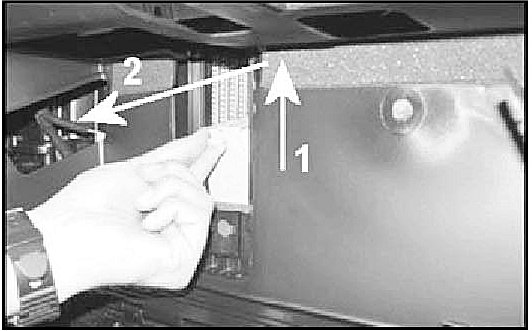 4. Remove the lower filter by lifting the filter (1), and when it gains enough clearance, pull it out like the upper filter (2).