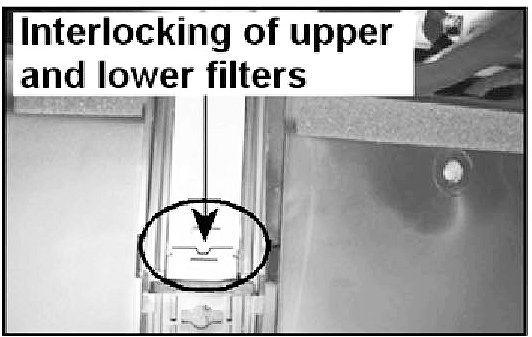 Install the upper filter also with the beaded side down, and insure the bead and groove interlock.