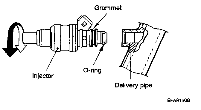 NOTE: If injector does not turn smoothly,the O-ring may be lammed. Remove the injector and re-insert it into the delivery pipe and re-check.