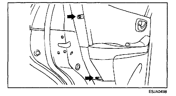 5. Roll the rear door glass down and then remove the bolts holding the rear door glass.