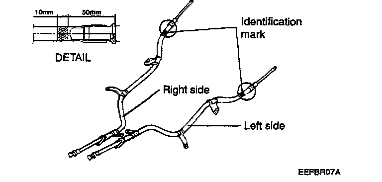 1. Check the parking brake cables for an identification mark paint or wind tape and install as appropriate on the left and right sides.