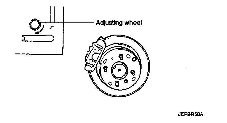 Rotate the adjusting wheel as much as 5 notches to the opposite direction of the arrow (Shoe clearance 0.19 mm (0.0075 inch) each side).