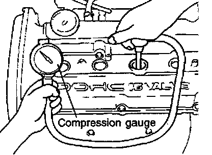 CHECKING COMPRESSION PRESSURE1. Before checking compression pressure, check the engine oil level. Make sure that the starter motor and battery are in normal operating condition.