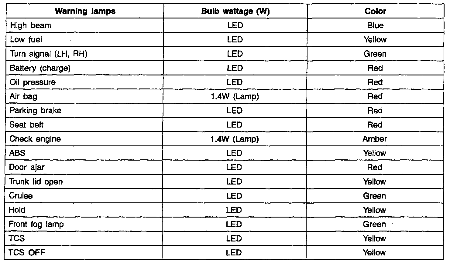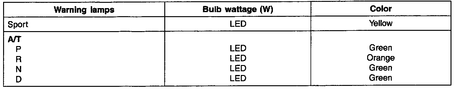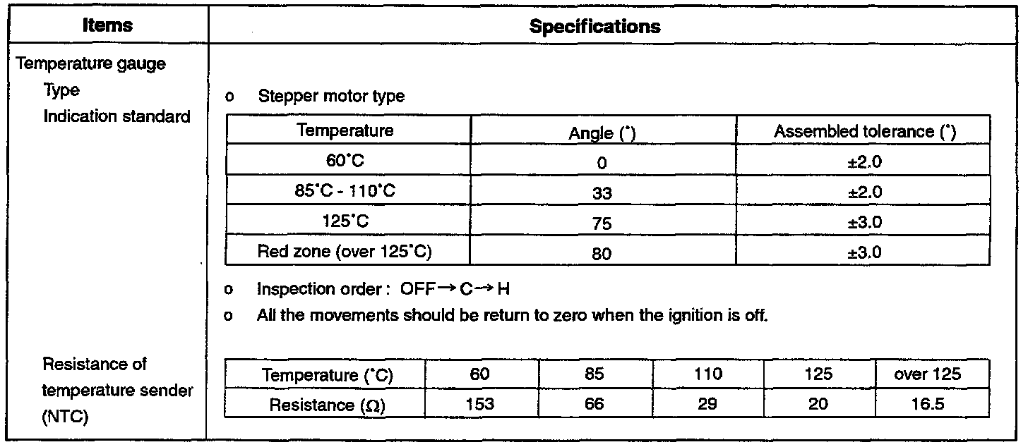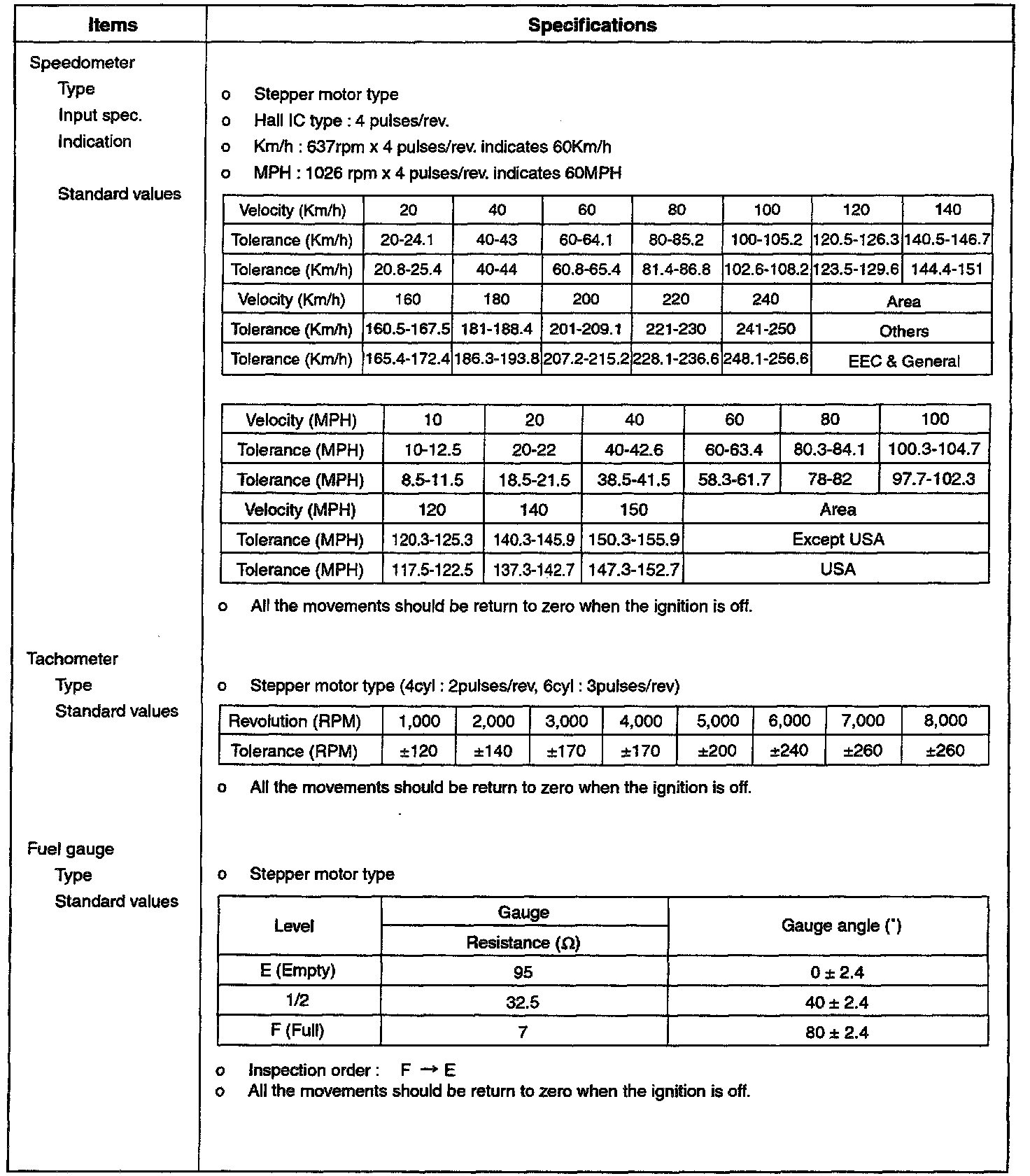 Instrument Panel, Gauges and Warning Indicators: Specifications