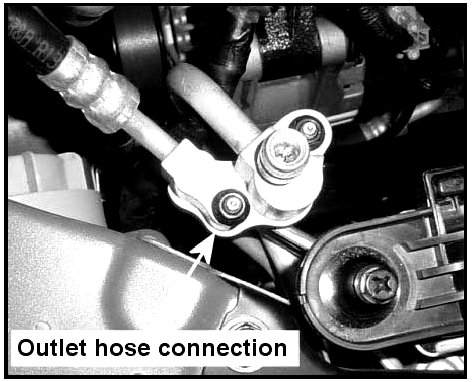 20. Tighten and torque the outlet pipe near the high side port to 4-7 lb-ft.