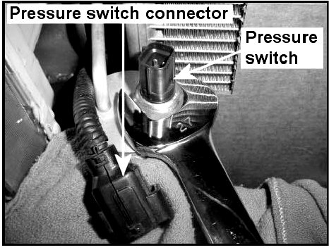 11. Disconnect the receiver drier pressure switch connector and remove the switch.