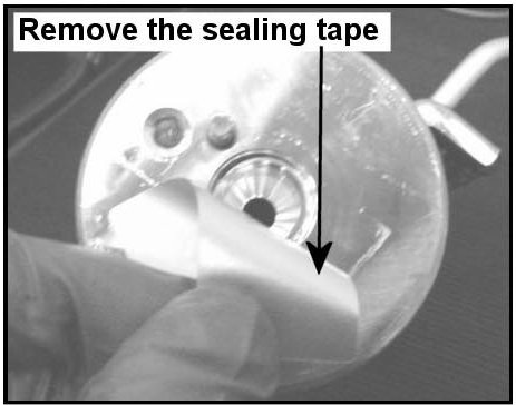 14. Remove the sealing tape from the bottom side of the receiver drier.