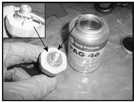 Be careful not to spill PAG oil on the paint of the vehicle.