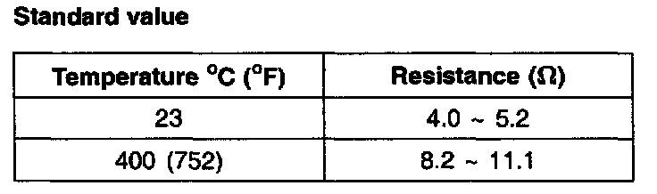 1. Disconnect the oxygen sensor connector, and measure the resistance between terminal 3 and terminal 4.
