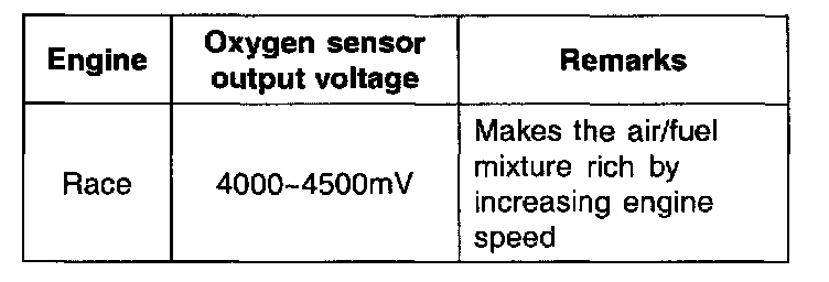 4. While repeatedly racing the engine, measure the oxygen sensor output voltage.