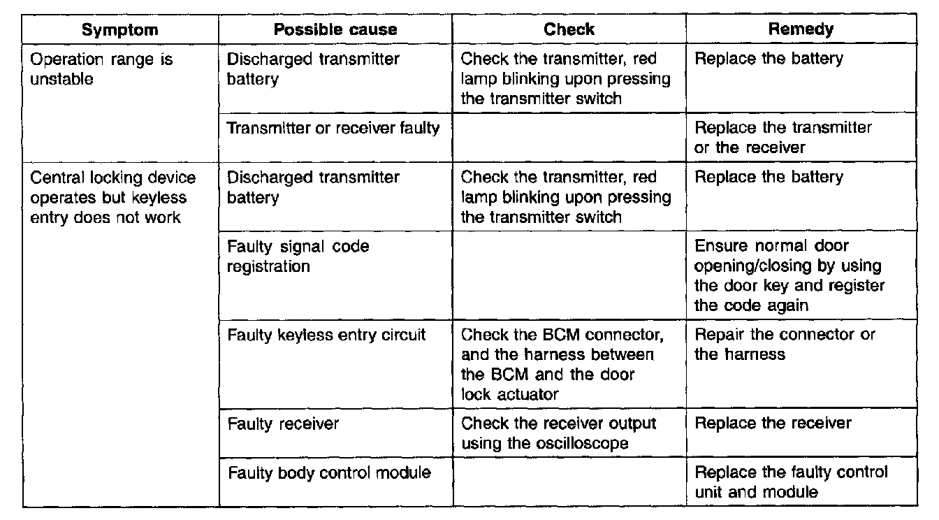Troubleshooting - Keyless Entry System: