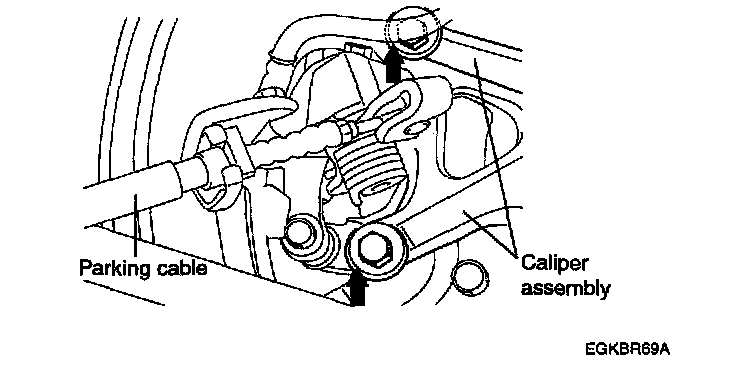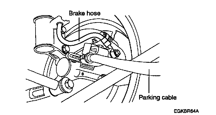 5. Remove the parking brake cable after disconnecting the parking brake cable mounting clip.