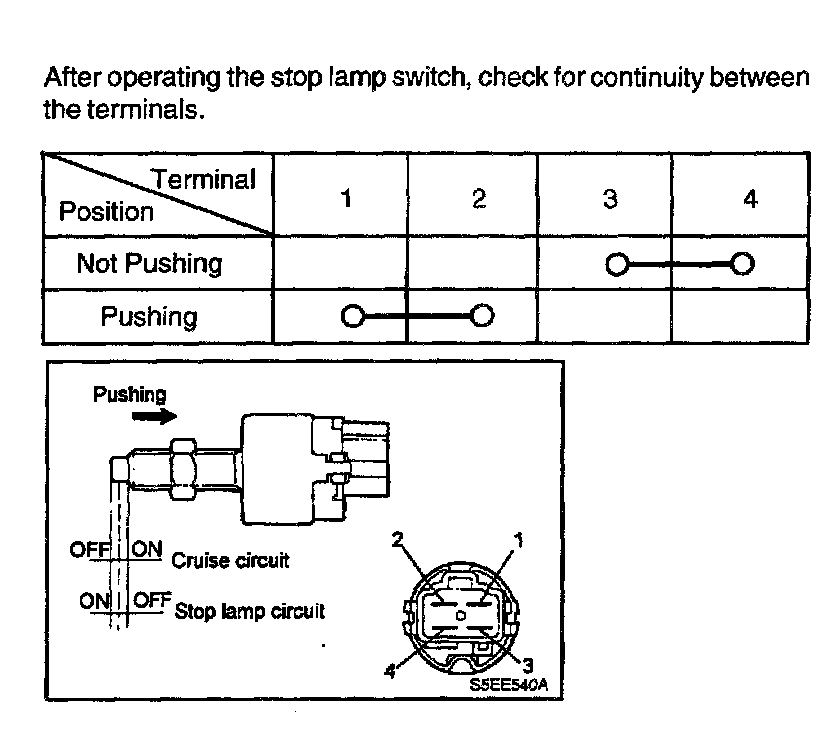 STOP LAMP SWITCHAfter operating the stop lamp switch, check for continuity between the terminals.